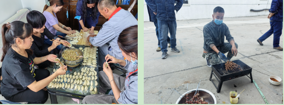 當“圓月皎皎在中天”時,各車間、各班組里處處洋溢著歡聲笑語,大家積極秀廚藝,展示各自烹飪技能、享受美食,像一家人一樣圍坐一起,分享著“團圓”的味道!