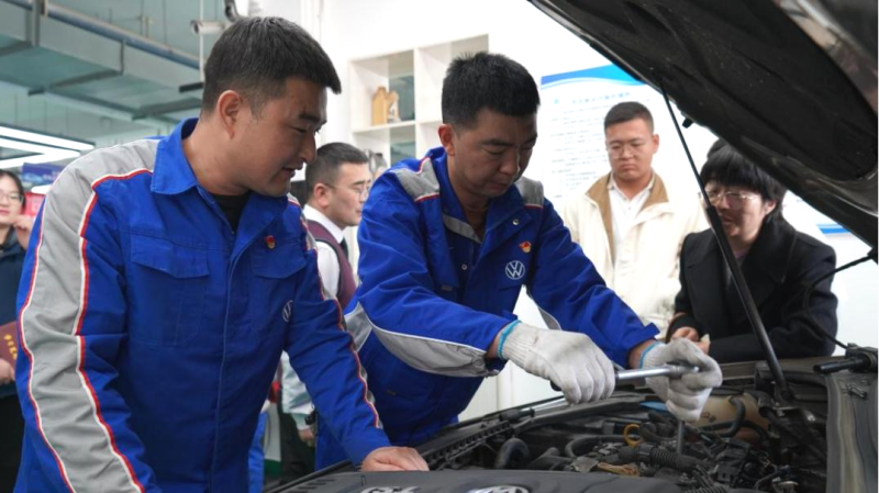 在參觀汽車專業(yè)實(shí)訓(xùn)中心時(shí),交通運(yùn)輸學(xué)院汽車系智慧互聯(lián)專業(yè)老師為支部黨員進(jìn)行了精彩的現(xiàn)場授課。大家積極請(qǐng)教,互動(dòng)交流,了解了智慧互聯(lián)交流與共享的新型模式,對(duì)生活和工作帶來便利和智能化體驗(yàn)等內(nèi)容。在場認(rèn)真聆聽的“物產(chǎn)工匠”石學(xué)林對(duì)近期將與高校老師組隊(duì)參加“西部陸海新通道建設(shè)全國引領(lǐng)性勞動(dòng)和技能競賽”,有了新的啟發(fā)。下一步,校企雙方將會(huì)對(duì)“優(yōu)服務(wù)、壯產(chǎn)業(yè)”技能競賽項(xiàng)目進(jìn)行深入的研究和探討,做到交流“不斷線”,學(xué)習(xí)“不停步”。