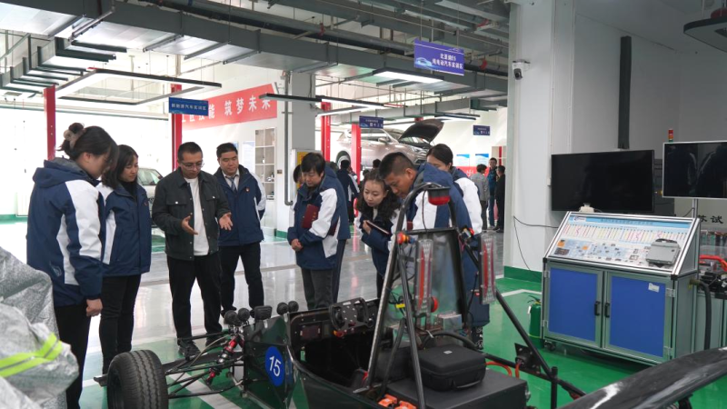 在參觀比亞迪E5純電動(dòng)車實(shí)訓(xùn)區(qū)時(shí),大家看到了學(xué)院2023年全國行業(yè)職業(yè)技能大賽二等獎(jiǎng)作品的技術(shù)“含金量”,饒有興趣地了解了繪圖-備材-制作-成型的具體過程,以及對(duì)轉(zhuǎn)動(dòng)、逃生、行駛、焊接、拆裝、車架與車身的測(cè)試。高校的科研成果凝聚了工匠精神傳承和“惟專惟精、匠人匠心”的人才培養(yǎng)理念,在提升職業(yè)道德修養(yǎng)、增強(qiáng)專業(yè)技術(shù)能力、發(fā)展創(chuàng)新創(chuàng)業(yè)能力等方面全面融入了工匠精神培育。在場的黨員仔細(xì)觀摩,向創(chuàng)作單位投以敬佩的眼光。雙方在“工匠精神是培養(yǎng)高素質(zhì)技術(shù)技能人才的目標(biāo)導(dǎo)向,是推動(dòng)產(chǎn)教融合、校企合作的重要實(shí)踐途徑”達(dá)成共識(shí)。