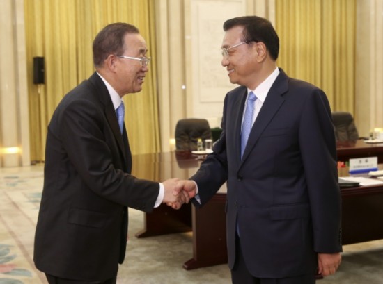 李克強(qiáng)總理會(huì)見聯(lián)合國(guó)秘書長(zhǎng)潘基文時(shí)說(shuō):"人類面臨的最大挑戰(zhàn),是在處理'減貧'和'應(yīng)對(duì)氣候變化'兩個(gè)問(wèn)題的過(guò)程中,取得一個(gè)平衡點(diǎn)。"