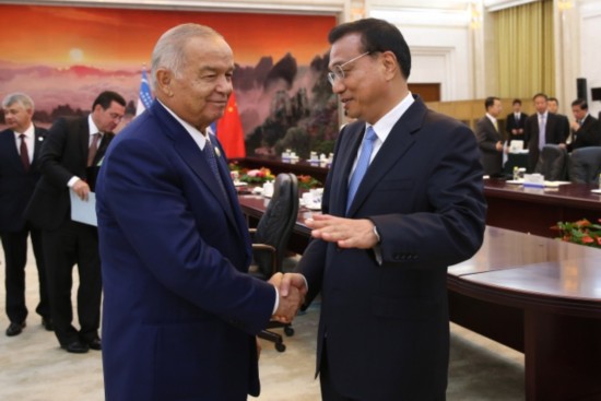 李克強(qiáng)總理會(huì)見烏茲別克斯坦總統(tǒng)卡里莫夫時(shí)說(shuō):"中烏可以在雙方感興趣的領(lǐng)域廣泛開展產(chǎn)能和裝備制造業(yè)合作。"