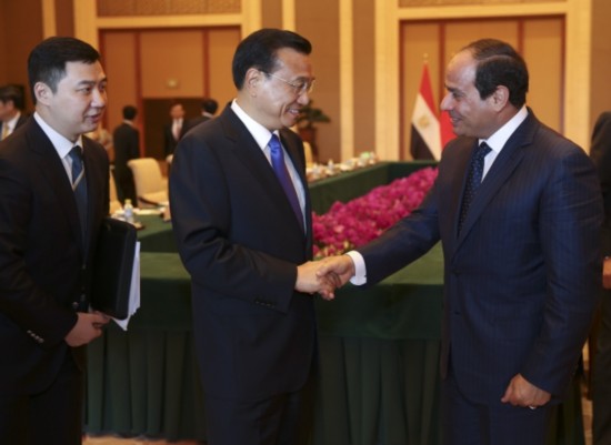 李克強(qiáng)總理會(huì)見埃及總統(tǒng)塞西,就對(duì)方希望"加強(qiáng)反恐合作"提議表示:"我們既要加強(qiáng)反恐合作,也要妥善解決熱點(diǎn)問(wèn)題,更要高度重視發(fā)展經(jīng)濟(jì),以鏟除恐怖主義傳播的土壤。"