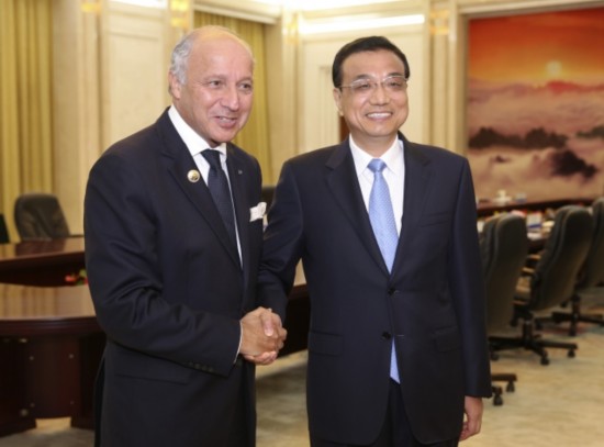 李克強(qiáng)總理會(huì)見法國(guó)外長(zhǎng)法比尤斯時(shí)說(shuō):"希望把中法第三方合作和核能合作做成'南北合作'的示范項(xiàng)目,做成推動(dòng)世界經(jīng)濟(jì)向復(fù)蘇方向前行的引導(dǎo)性項(xiàng)目。"